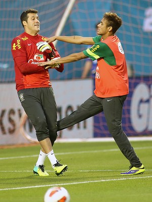 Julio César brinca com Neymar no treino da seleção brasileira (Foto: Mowa Press)