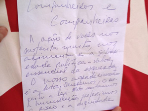 Carta escrita pelos petistas presos no processo do mensalão que estão na Papuda (Foto: Luciana Amaral/G1)