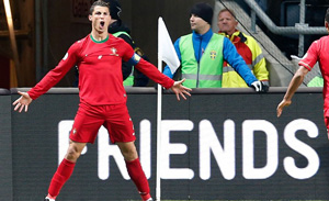 Cristiano Ronaldo se consagrou em Estocolmo. Fez três gols, classificou Portugal para a Copa do Mundo de 2014 com a vitória por 3 a 2 sobre a Suécia, na Friends Arena, e saiu para festejar a emblemática vitória na terra de Ibrahimovic, principal derrotado da repescagem das eliminatórias europeias apesar de ter balançado a rede duas vezes.