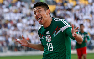 Oribe Peralta comemora gol do México sobre a Nova Zelândia: carrasco do Brasil vai à Copa (Foto: Marty Melville/AFP)