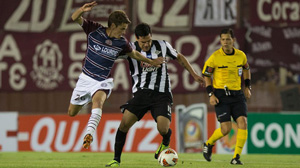 Precisando de gols para avançar na Copa Sul-Americana, o Libertad começou no ataque. Com pontas abertos pelas buscando sempre o jogo aéreo, e os volantes avançados, os paraguaios pressionaram o Lanús e não deixaram os donos da casa saírem para o jogo. A superioridade, porém, não foi transformada em oportunidades claras de gol – apenas uma chance com Jorge Gonzalez em cobrança de falta.