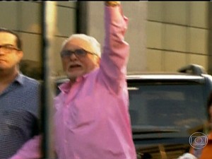 José Genoino ao se entregar à Polícia Federal em São Paulo (Foto: Reprodução TV Globo)
