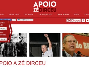 Imagem do site criado para arrecadar doações para José Dirceu (Foto: Reprodução)