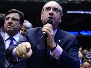 O líder Eduardo Cunha (PMDB-RJ), ao lado do deputado Danilo Forte (PMDB-CE), em sessão do Congresso (Foto: Luis Macedo/Câmara)