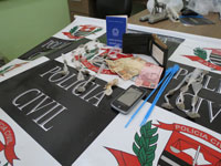 Para cumprir o mandado de busca e apreensão, além de Agnaldo, também o policial civil Ecyr Tótoli de Paula. O lavrador recebeu voz de prisão em flagrante delito, acusado de tráfico de drogas. Após ser indagado, o indiciado assumiu a propriedade das drogas e do dinheiro, alegando que é usuário e que a droga seria para seu consumo próprio.