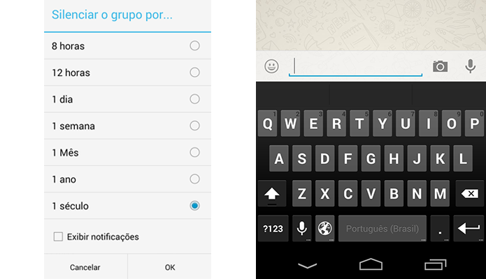 Grupos do WhatsApp agora podem ser calados para sempre. A última atualização do mensageiro comprado pelo Facebook, em sua versão para Android, trouxe a função de silenciar grupos por um mês, um ano, e até "um século". O app também passará a oferecer desligamento completo das notificações.