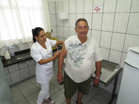 Enfermeira aplica vacina em paciente, no PSF do Alto da Estação Vacinação continua até a próxima sexta-feira, dia 16, em Ituverava