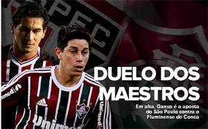 Conca, argentino, se caracteriza por carregar e brigar pela bola. O brasileiro Ganso, mais clássico, prefere o toque de primeira em um estilo de jogo caladão. Em comum, a posição: meias. E, claro, o posto de maestros de Fluminense e São Paulo, equipes que se enfrentam às 22h (de Brasília), nesta quarta-feira, no Maracanã, pelo Brasileirão.