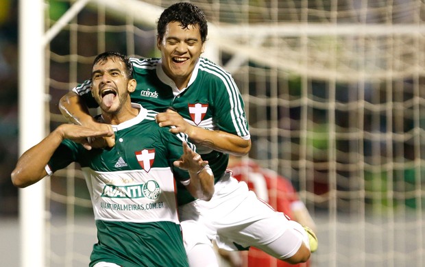 Henrique comemora com Mendieta seu gol, na vitória do Palmeiras contra o Figueirense (Foto: Getty Images)
