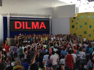 Dilma falou a uma plateia de cerca de dois mil jovens vindos de vários estados. A organização apoia a reeleição da presidente, que foi recebida com gritos como “não tem Aécio, nem Eduardo, eu estou com Dilma e não mudo de lado” e “vai ter Copa, vai ter tudo, só não vai ter segundo turno”.