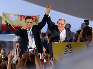 Candidato à Presidência da República, o tucano Aécio Neves também participou do evento, realizado no Centro de Exposição Imigrantes, na Zona Sul da capital paulista. Aécio deu um tom nacional ao discurso e não poupou críticas ao governo petista. "Aqueles que frustraram a confiança popular, aqueles, como ocorre no governo federal, que abdicaram de um projeto transformador de país para se contentar única e exclusivamente a um objeto de poder vão colher na urna, daqui a três meses, aquilo que plantaram, a repulsa da população brasileira", disse Aécio.
