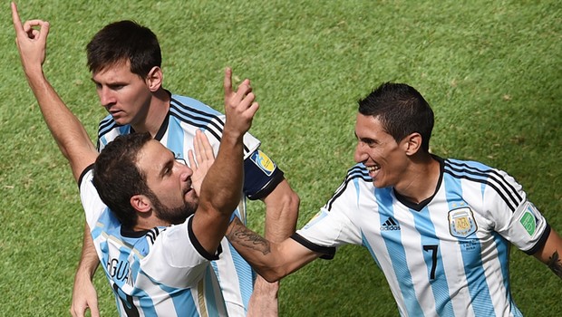 Kompany tentou sair jogando pelo meio, avançou até o grande circulo, mas esticou demais a bola e foi desarmado por Biglia. Messi ficou com a sobra e, marcado por três, fez o jogo girar. Di María tentou servir Zabaleta na direita, mas a bola desviou em Vertonghen e sobrou para Higuaín. Pipita emendou bonito e marcou seu primeiro gol no Mundial. Fim de um jejum que já durava 83 dias.