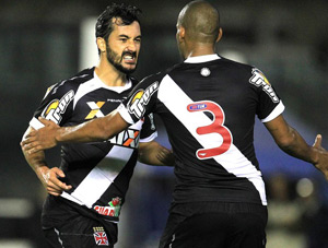 Douglas comemora com Rodrigo o primeiro gol contra a Ponte Preta (Foto: Marcelo Sadio / Vasco.com.br)