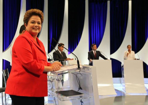 “Eu sou contra qualquer forma de violência contra pessoas. No caso específico da homofobia, eu acho que é um ofensa ao Brasil. Então, fico triste de ver que temos grandes índices atingindo essa população. Acho que a gente tem que criminalizar a homofobia, que não é algo com o que a gente pode conviver”, disse a candidata à reeleição, logo após o debate realizado pelo SBT, pelo jornal Folha de S.Paulo, pelo portal UOL e pela rádio Jovem Pan.