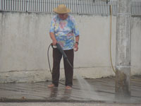 Lavar calçada com água potável é desperdício Falta de chuva e esbanjamento fazem com que falta água em diversas cidades do Brasil