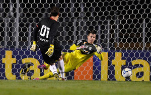 Paulo Vicor cai no canto certo para defender a cobrança de Ceni (Foto: Mauro Horita / Ag. Estado)