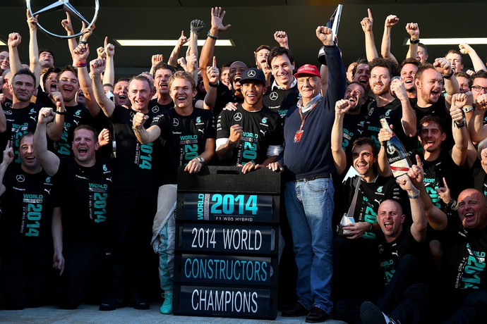 E quem levou a melhor foi Lewis Hamilton, que chegou à nona vitória na temporada, seu 31º triunfo na carreira, igualando-se a Nigel Mansell como o sexto maior vencedor da categoria. Nico Rosberg completou a dobradinha da Mercedes, que garantiu de forma antecipada o inédito título do Mundial de Construtores para as Flechas de Prata, quebrando uma hegemonia de quatro anos da RBR. Companheiro de Felipe Massa na Williams, Valtteri Bottas completou o pódio com mais uma boa atuação. Já o brasileiro, que largou em 18º após ter problemas no motor na classificação de sábado, fez uma corrida de recuperação, mas não conseguiu entrar na zona de pontuação, terminando em 11º