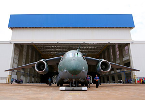 A Embraer e o Comando da Aeronáutica apresentaram, nesta terça-feira (21), o primeiro protótipo do avião de transporte militar KC-390 produzido na fábrica de Gavião Peixoto (SP). Essa é a maior aeronave fabricada no Brasil, segundo a empresa. O evento teve a presença do Ministro da Defesa, Celso Amorim. O acordo entre a Força Aérea Brasileira (FAB) e a fabricante brasileira de aviões prevê a aquisição de 28 aeronaves ao longo de dez anos - a primeira entrega está programada para 2016.