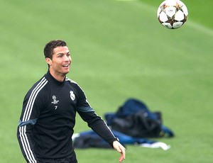 Cristiano Ronaldo de bem com a bola no treino do Real na segunda-feira (Foto: Agência AP)