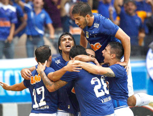 Atletas festejam o primeiro gol do Cruzeiro no Mineirão (Foto: Reuters)