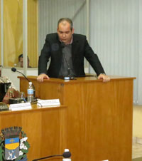 O vereador Fábio Freitas Gibaile discursa após ter sido eleito presidente da Câmara Municipal