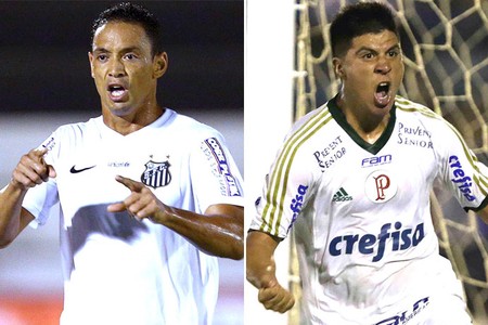 Ricardo Oliveira e Cristaldo: as esperanças de gol de Santos e Palmeiras, nesta quarta-feira (Foto: GloboEsporte.com)