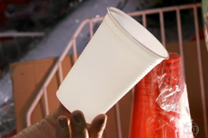 Produção de copo de plástico gasta mais água do que lavar copo de vidro (Foto: Reprodução/TV Globo)