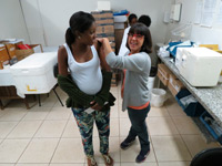 A coordenadora das campanhas de vacinação, Ione Márcia Mendonça de Castro, aplica vacina em paciente