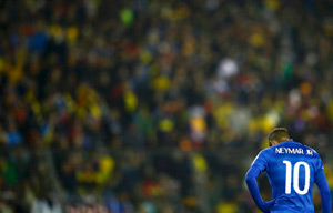 E Neymar? Devem estar se perguntando. Na única jogada digna de Brasil, Daniel Alves girou, arrancou e cruzou para o atacante cabecear. Quase outro gol do Barça, mas Ospina pegou e o capitão levou a mão à bola: cartão amarelo e suspensão para o jogo contra a Venezuela.