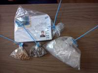 Após solicitar o apoio de uma guarnição, se dirigiram ao local o sargento Valtecir e o cabo Alessandro, e conseguiram localizar e apreender porções de maconha e cinqüenta e cinco pedras de crack, todas separadas e embaladas prontas para a venda, que estavam em uma plantação de banana, próximo ao local onde os indivíduos estavam. Também foi apreendida uma bicicleta, com uma sacola contendo documentos pertencentes a um deles.