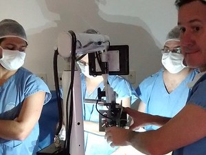 Médico usa novo equipamento durante cirurgia (Foto: Ramon Gabriel Teixeira Rosa/Arquivo pessoal)