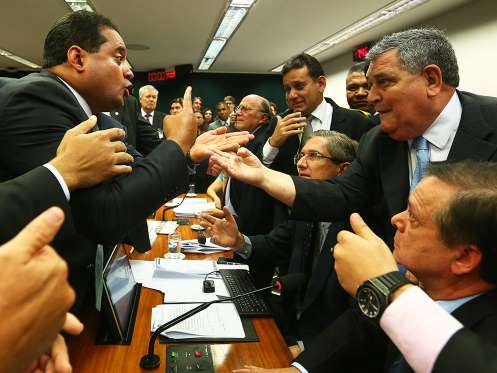 Eles acabaram com os microfones cortados pelo relator: "Isso aqui, com todo respeito, não é uma Câmara de Vereadores", disse Jovair Arantes (PTB-GO), antes de chamar o jurista Miguel Reale Júnior para depor. Arantes não imaginava, porém, que a reunião encerraria com parlamentares quase protagonizando cenas de pugilato, provocando um empurra-empurra generalizado que chegou a derrubar cinegrafistas que acompanhavam a discussão.