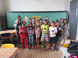 A professora Cláudia Aparecida da Silva Pilotto e seus alunos