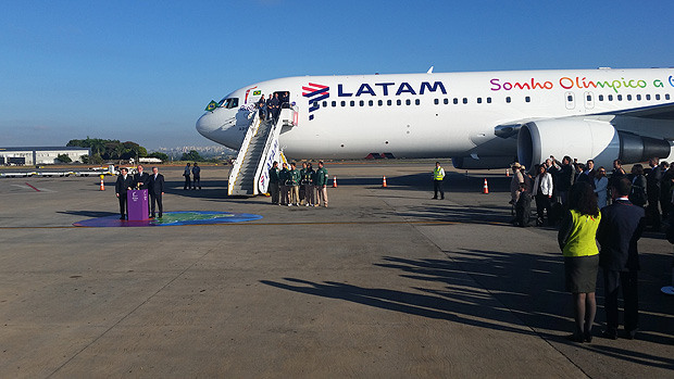 O público não teve acesso à pista de pouso, no Terminal 2, o menor do aeroporto. O voo era fretado, da Latam.