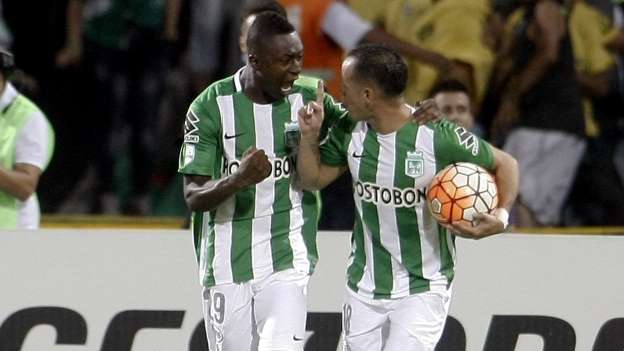 O time colombiano empatou o jogo ainda no primeiro tempo. Aos 47, Berrío fez jogada individual pela esquerda e cruzou rasteiro para Torres completar para o gol.