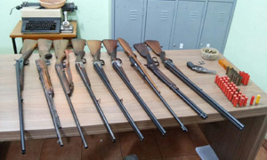 Segundo o Boletim de Ocorrência, a Polícia Militar, em cumprimento a mandado de busca e apreensão, se dirigiu à residência do comerciante, onde encontrou seis espingardas, dois rifles, uma carabina e um revólver, além de munição para as armas.