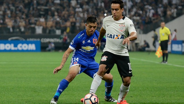Com gols de Rodriguinho e Jadson, o Corinthians venceu a Universidad de Chile por 2 a 0, nesta quarta-feira, em Itaquera, na estreia da Copa Sul-Americana. O primeiro voltou ao Timão após dois jogos fora e quase uma semana tratando dores no joelho esquerdo. O segundo chegou ao 15º gol com a camisa alvinegra na arena, igualando Guerrero – ambos estão atrás de Romero, que tem 17.