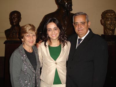 “Especialmente os meus pais foram essenciais ao meu êxito, pois sempre me apoiaram tanto material como psicologicamente para que eu nunca desistisse do meu sonho. Reconheço e agradeço muito a eles por todas as privações que passaram para me dar suporte nos estudos. Divido esta grande conquista com eles e serei eternamente agradecida pela confiança que depositaram em mim”.