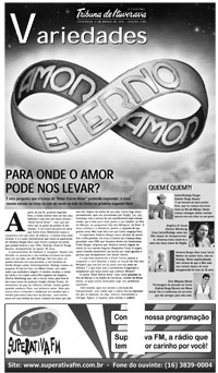A partir do dia 05, próxima segunda-feira, a Globo estreia mais um dos seus folhetins e que tem um título comum – “Amor Eterno Amor” – mas, que promete cair no gosto do público fã das novelas. É em nome das juras de amor que Carlos (Caio Manhente) busca o reencontro com seu amor de infância, a menina Elisa (Júlia Gomes). E é o amor incondicional que move as esperanças de Verbena Borges (Ana Lúcia Torre) à procura de pistas que possam levá-la a seu filho, Rodrigo (Gabriel Braga Nunes), desaparecido há quase 30 anos.