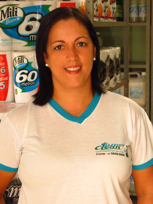 Atualmente trabalho na loja de produtos de limpeza Super Clean, que funciona na Av. Orestes Quércia, 618, fone 3839-5600. Além de vendedora também atuo na parte administrativa. Gosto muito do que eu faço, pois aqui foi uma oportunidade de voltar ás minhas origens e trabalhar com o público, que é muito bom. Conquisto grandes amizades através do meu trabalho e fico feliz, pois mostra que estou desempenhando bem minhas funções.