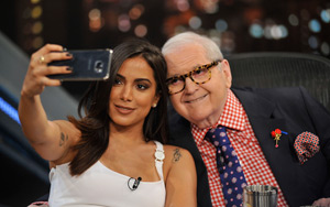 A última temporada do “Programa do Jô” entra no ar dia 28 de março e no final deste ano sairá fora da grade de programação da Globo. Segundo o apresentador Jô Soares, quando ele renovou seu contrato com a emissora, há dois anos, a finalização da atração já havia sido combinada entre as partes. O apresentador, de 78 anos, não quer saber de aposentadoria e anunciou que pretende continuar trabalhando, mas não deu detalhes sobre suas intenções futuras. Na foto, Jô Soares aparece tirando um “selfie” com a cantora Anitta, numa das milhares de entrevistas que gravou ao longo de sua carreira.