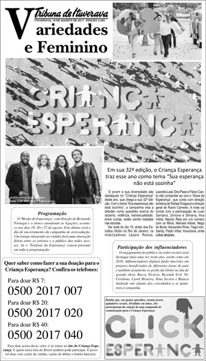 O jovem e sua diversidade são destaques no “Criança Esperança” deste ano, que chega a sua 32ª edição. Com o tema “Sua esperança não está sozinha”, a campanha visa a debater como questões acerca do racismo, violência, transexualidade, entre outras, estão sendo tratadas nas escolas.